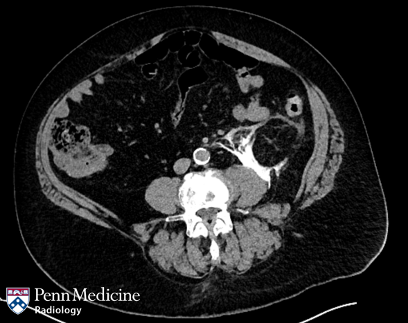 40-year-old woman with small brown flecks in her urine for the previous 2-3 months